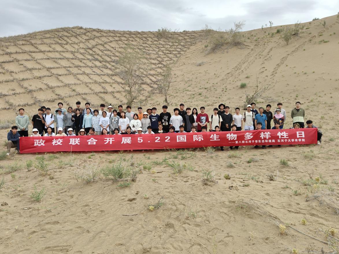 近日,由石河子大学农学院与八师石河子市生态环境局联合开展2024年国际生物多样性日活动。基于石河子大学农学院农业资源与环境专业生态学课程实习实践与支部党团建活动,在古尔班通古特沙漠等地开展生物多样性调查保护、防护林体系建设,光伏农业产业化、盐碱地“以种适地”与“以地适种”结合等内容。采取“内容导引、10名大学生现场科普、指导教师点评”的闭合环节,部分优秀科普讲解通过抖音科普号“星火绿洲”进行发布。