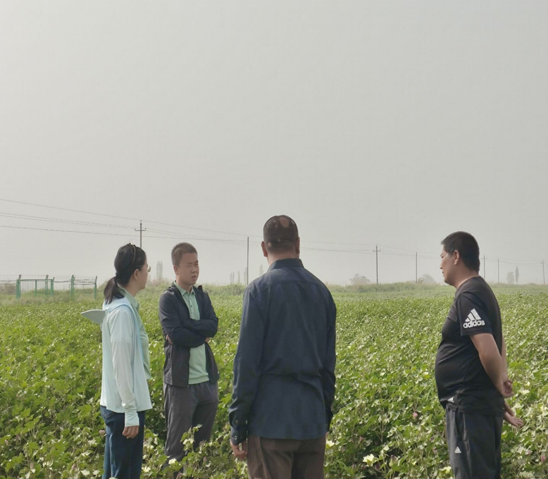 7月5日上午,石河子大学农学院科技特派员团队张强副教授、王江丽教授带领石河子大学智慧农业技术推广科技特派员服务团队深入第三师图木舒克51团4连,在长期服务农户穆萨艾力的棉田开展实地技术指导,和农户探讨千亩级棉田灌水、施肥与防虫害等情况。