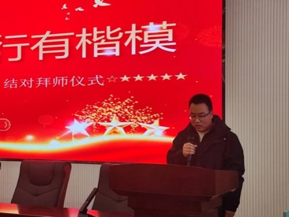 结拜仪式上,师徒对面站立,由新入职教师为指导教师赠送教具,感谢指导教师引路、教诲,并勉励自己勤学勤练,早日站稳讲台,精心教书育人。