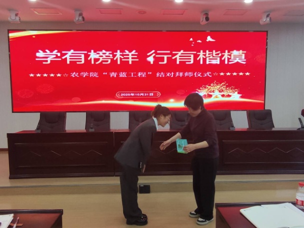 金秋十月,叠翠流金。10月30日下午,农学院党委在北苑新区理工楼四楼会议室隆重举行了2025年入职教师举行了“青蓝工程”结对拜师仪式,学院全体教师和城市与环境学院部分教师(原林学系教师)参加了会议。