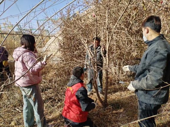 在51团19连冷棚石榴种植基地,团队发现当地种植户对石榴冬季修剪与防寒知识掌握较为薄弱。结合实际情况,武老师指导农户将树形修剪为“开心形”,并建议在树体外部加设塑料薄膜、毛毡等保温材料,多重防护确保石榴安全越冬。