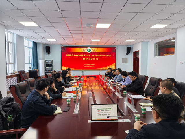 3月12日下午,石河子大学农学院与新疆农业职业技术大学座谈交流会在北苑新区理工楼214会议室举行。双方围绕科学研究、专业建设、人才培养等议题展开深入交流,共商合作发展大计。