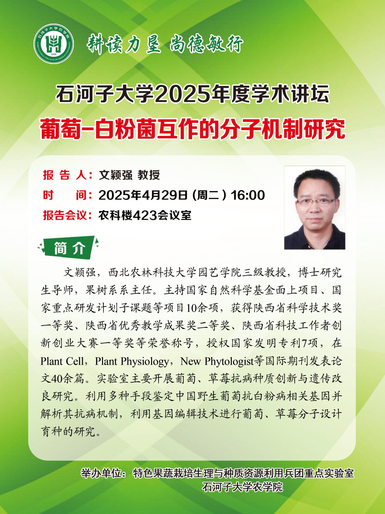 特色果蔬栽培生理与种质资源利用兵团重点实验室2025年4月29日学术交流活动预告