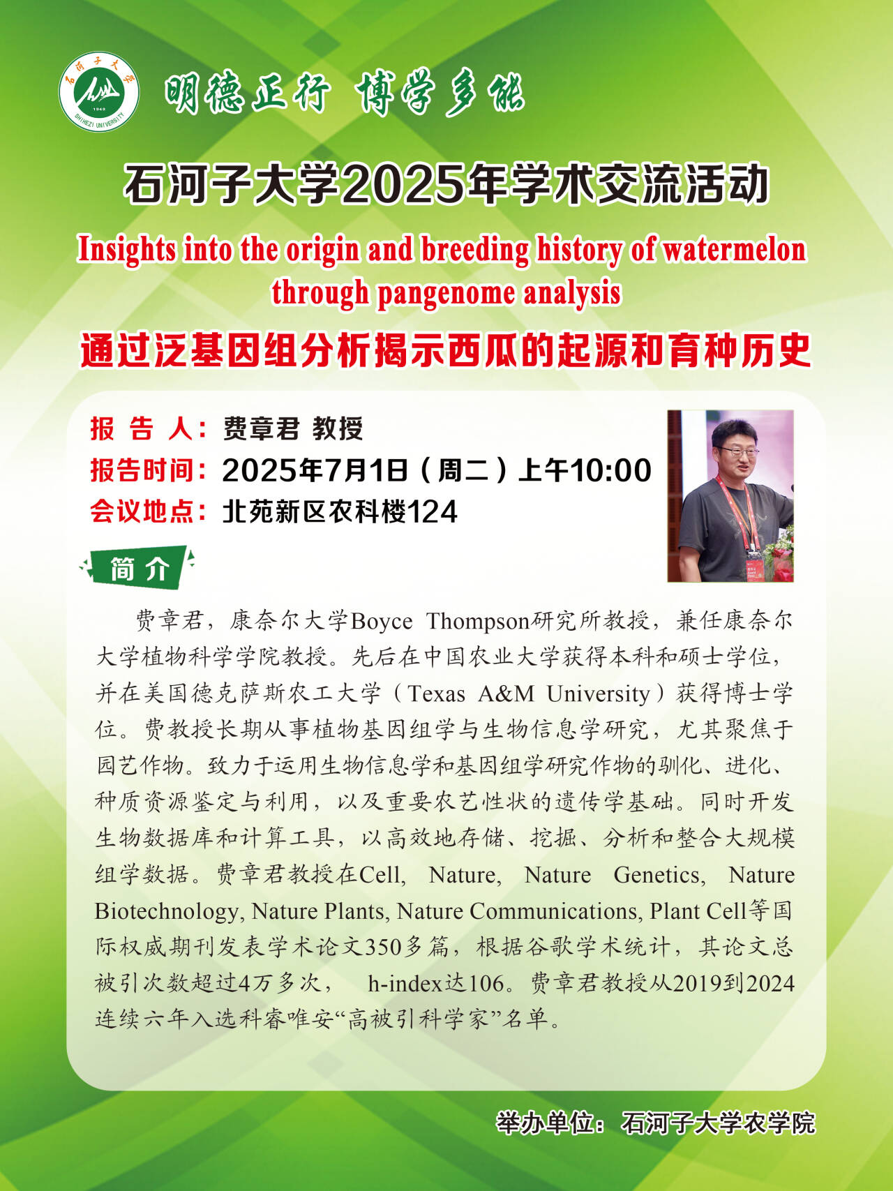 2025年石河子大学农学院学术交流活动预告