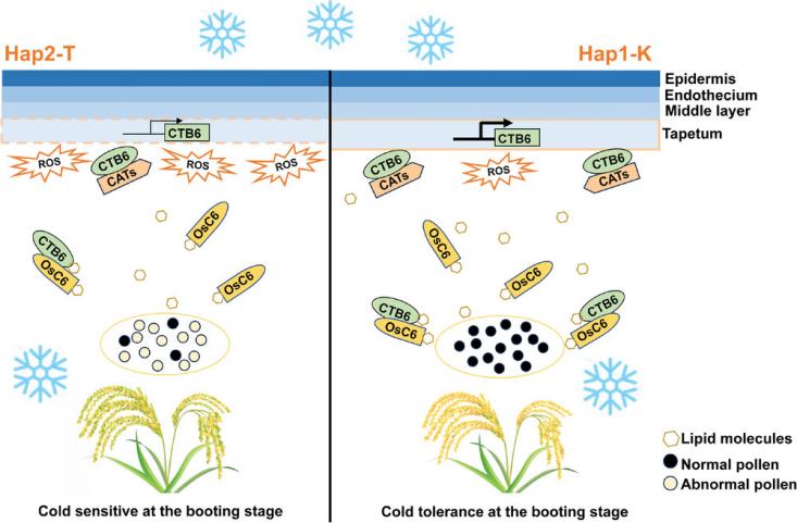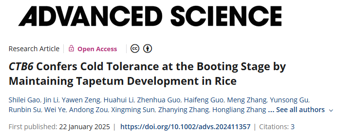 2025年,Advanced Science在线发表了题为“CTB6 Confers Cold Tolerance at the Booting Stage by Maintaining Tapetum Development in Rice”的研究论文,揭示了CTB6通过调节ROS的稳态参与绒毡层PCD并通过影响低温下花药中的脂质含量共同调控水稻孕穗期耐冷性。