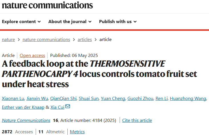 Nature Communications | TSP4调控热胁迫下番茄坐果